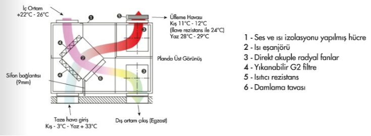 • Isı geri kazanım verimli kompakt gövde