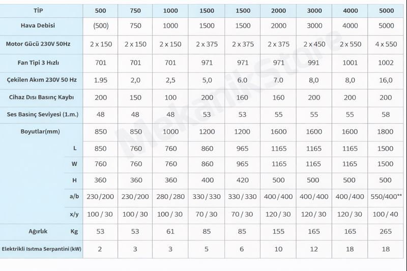 * FANLAR 3 DEVİRLİDİR, HIZ KONTROL KUTUSU STANDART CİHAZ FİYATIMIZA DAHİLDİR.