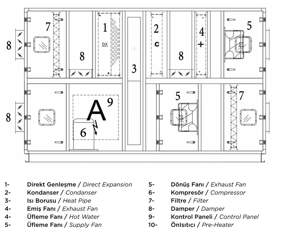 rutubetin alınması için özel olarak tasarlanmıştır. Kapalı yüzme havuzlarında nem oranının VDI 2089 ‘a göre %40