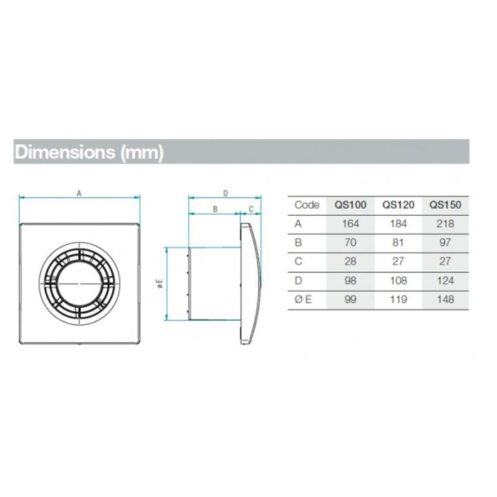 Banyo, tuvalet ve küçük hacimli alanlarda etkili hava tahliyesi için tasarlanmış QS100 modeli, sessiz çalışması ve düşük enerji tüketimiyle öne çıkar. Kompakt yapısı sayesinde duvar, tavan veya pencere montajına uygundur.
